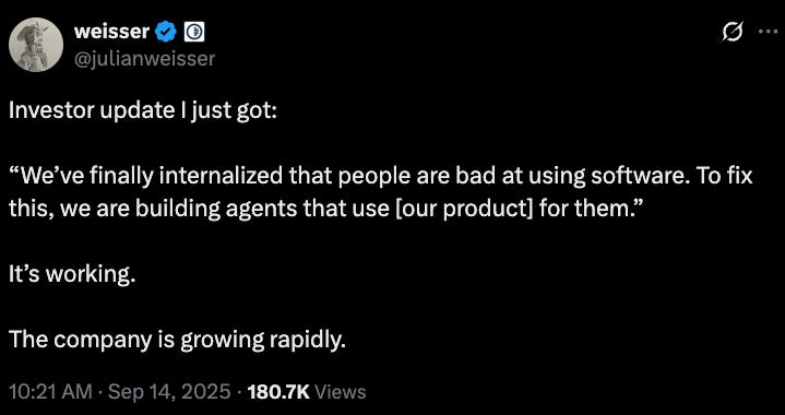Agents will use software for you. Don’t try to design UIs for people, agents are just going to use them anyways. Right now, we’re trying to be backwards compatible, but if you want to get ahead, just design the UI for agents.