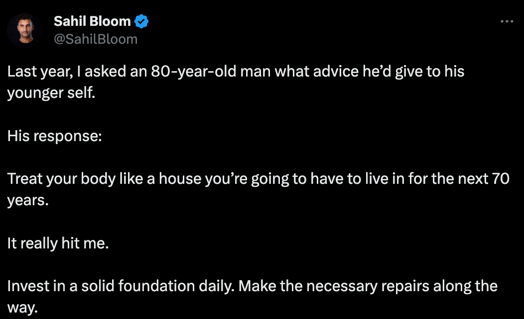 Tweet: Treat your body like a house you’re going to live in for the next 30 years